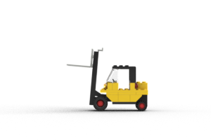 The set also includes a big forklift with an improved mechanism, alas the spring often gets lost. The track is a circle with two additional straight sections, once again identical to 7730.