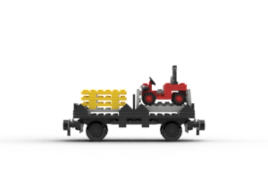 The B-model again represents a charming diesel good train with a whopping 3 additional flatbed wagons (the last one of which is equipped with a brakeman's cab), a tractor, and a ramp.