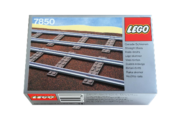 Set 7850 contains 8 sections of straight track, with each section being composed of 2 straight rails and 2 sleeper plates. These sections are suitable for push-along trains and 4.5V motors. If you want to use them for 12V trains, you also have to add a conducting rail 7854.